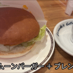 秋の訪れを感じる季節限定バーガー、「お月見フルムーンバーガー」をブレンドコーヒーと一緒にいただきました。ふっくらバンズに包まれた卵とベーコン、そしてチーズのコクが重なり合う“月見仕様”。バンズの甘みとジューシーなパティのバランスが絶妙で、まさに“コメダらしい贅沢感”が味わえます。